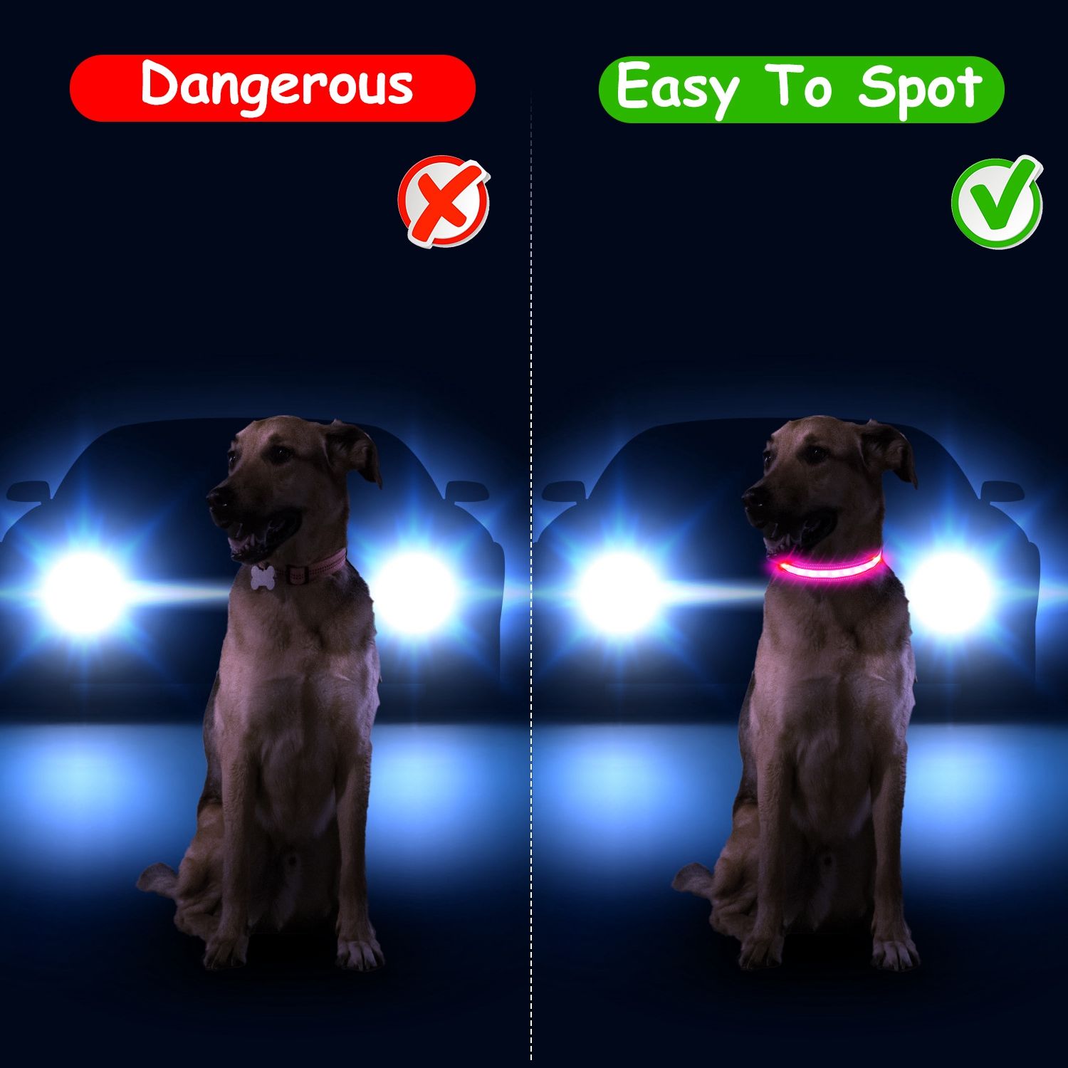 Light Up Dog Collar LED Dog Collar Safety Night Glowing Dog Collar with 9 Light Colors IPX7 Waterproof USB Rechargeable