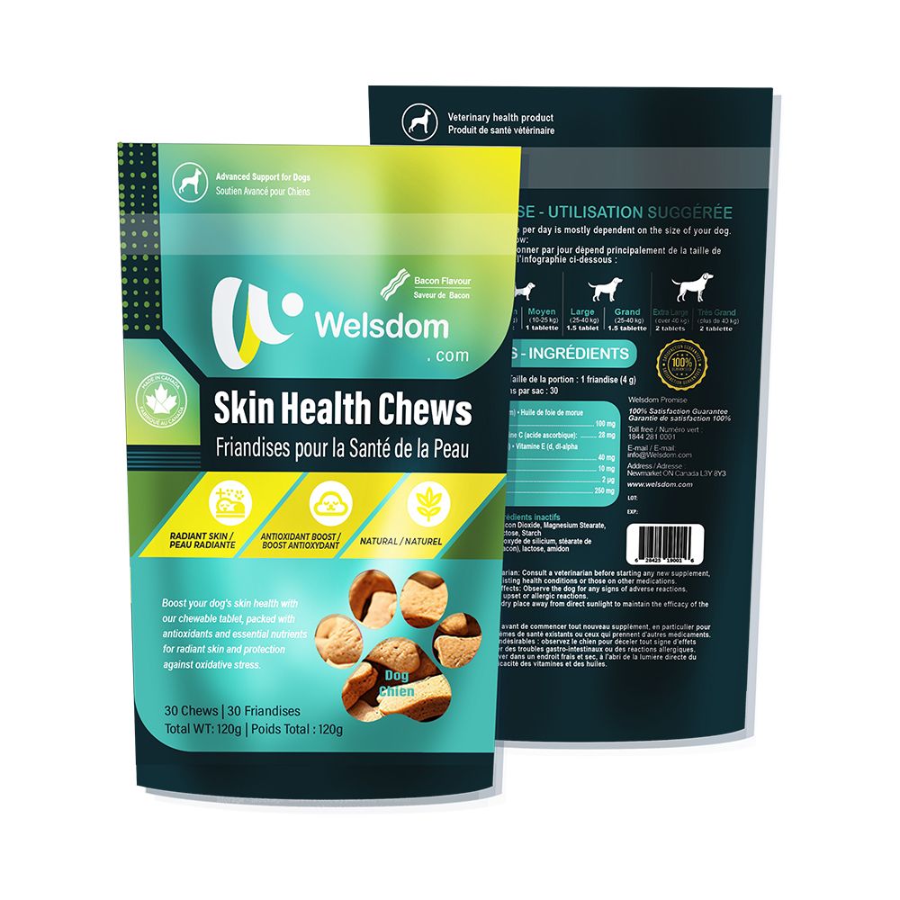 Introducing Skin Health Support Chewable Tablets for Dogs, a specially formulated supplement designed to support your dog’s skin health, provide antioxidants, and maintain normal skin moisture. Each chewable tablet combines essential fatty acids, vitamins, and minerals to promote overall skin condition and protect against oxidative stress, ensuring your dog’s skin remains healthy and vibrant.