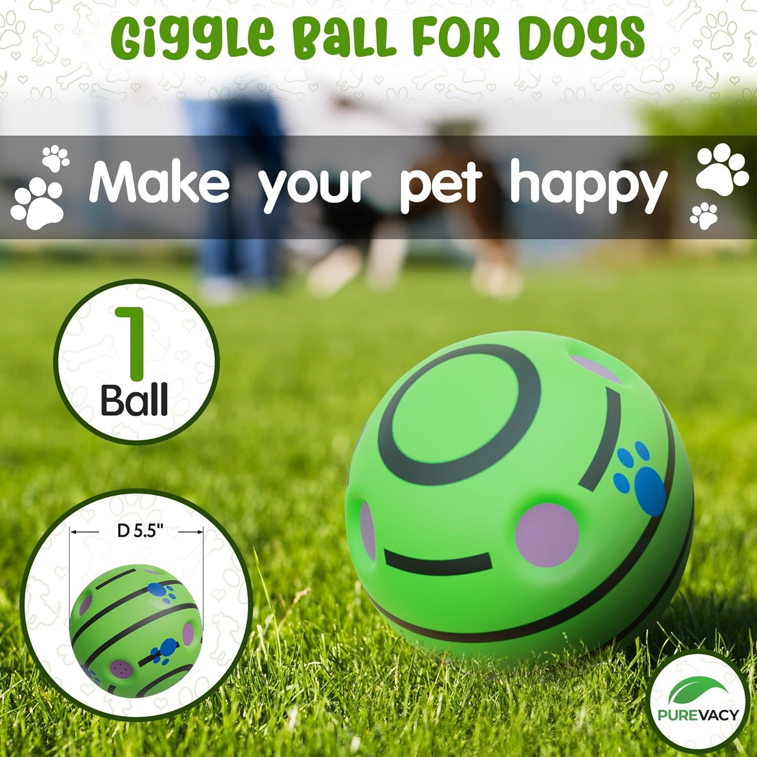 Home > Giggle Dog Ball; 5.5" in Diameter; Green Interactive Dog Toy Sound 12 oz; Vinyl Giggle Ball for Dogs; Wiggle Waggle Ball for Dogs; Sound Dog Toys Wobb