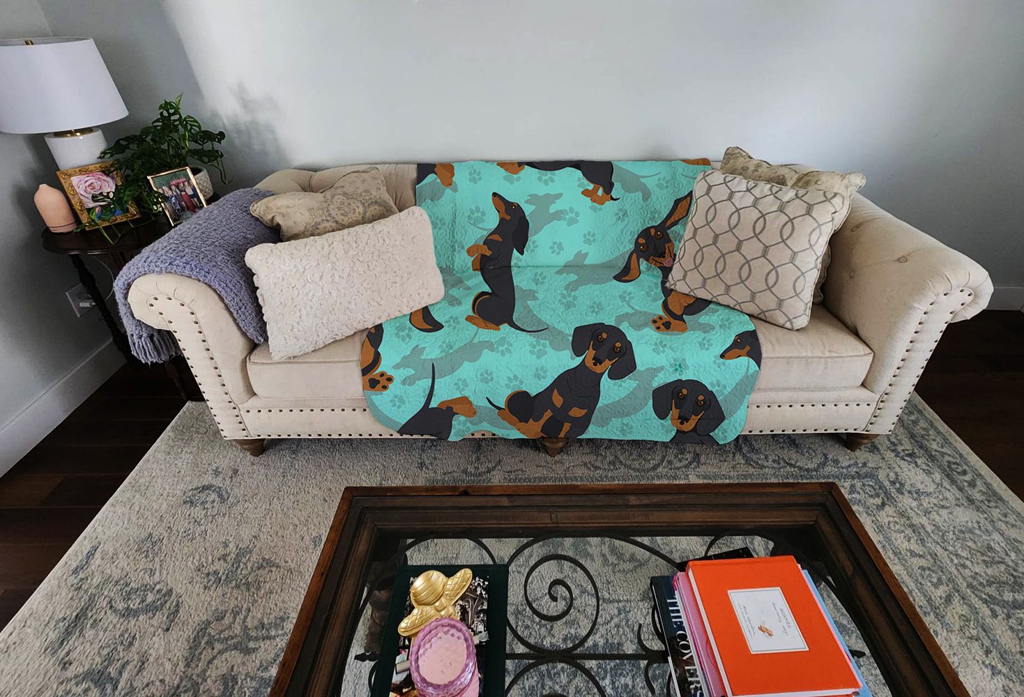 Quilted Blanket 50x60 featuring breed specific Dachshund artwork. Our quilted throw blanket is a must-have for anyone who values Form as well as Function! It measures 50 inches by 60 inches and is trimmed with a whip stitch. This heavier blanket is sure to keep away any draft or breeze without causing you to overheat. Use it as an accent piece for furniture, wrap your child in its comforting warmth, keep your pet calm on visits to the vet's office, or use it as an extra layer of softness for any crib or kennel. Here at Caroline's Treasures, we know that some dogs love to share sleeping accommodations with their favorite humans; This blanket makes a great coverlet for the foot of your bed so your four-legged companion has a warm, soft area to snooze on all night without getting your bedding dirty over time. When the blanket does get too many pawprints on it, simply throw it in the wash and follow the care instructions on the tag to restore it to like-new condition. This blanket is made of 67% Polyester and 33% Cotton to ensure durability and comfort. Filled with 100% Cotton and quilted, it does an excellent job at keeping the chill at bay. This is from Caroline's Treasures Dogs category of products.