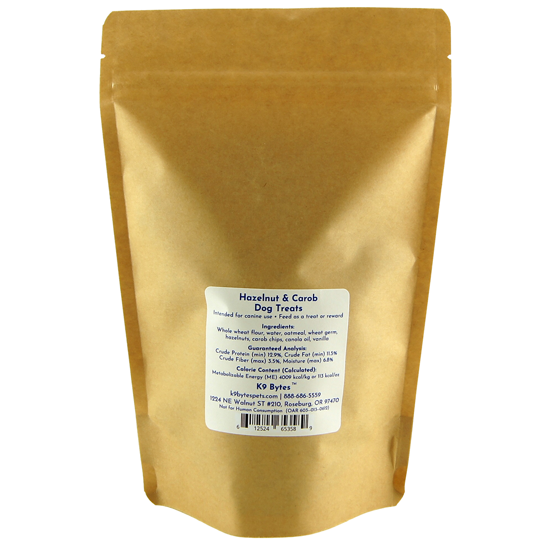 Yummy carob and crunchy hazelnuts will bring your pup back for more.