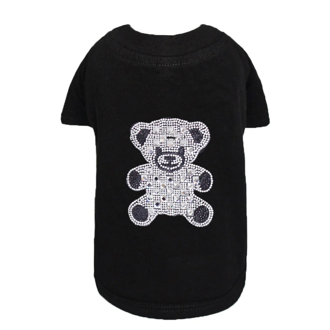 Style your baby in this adorable cotton tee by Hello Doggie that features an extravagant sparkling teddy bear applique. Sizes - XXS - L  MSRP - $ 36.00 *Tee is handmade and sizes may vary slightly. Made in USA.