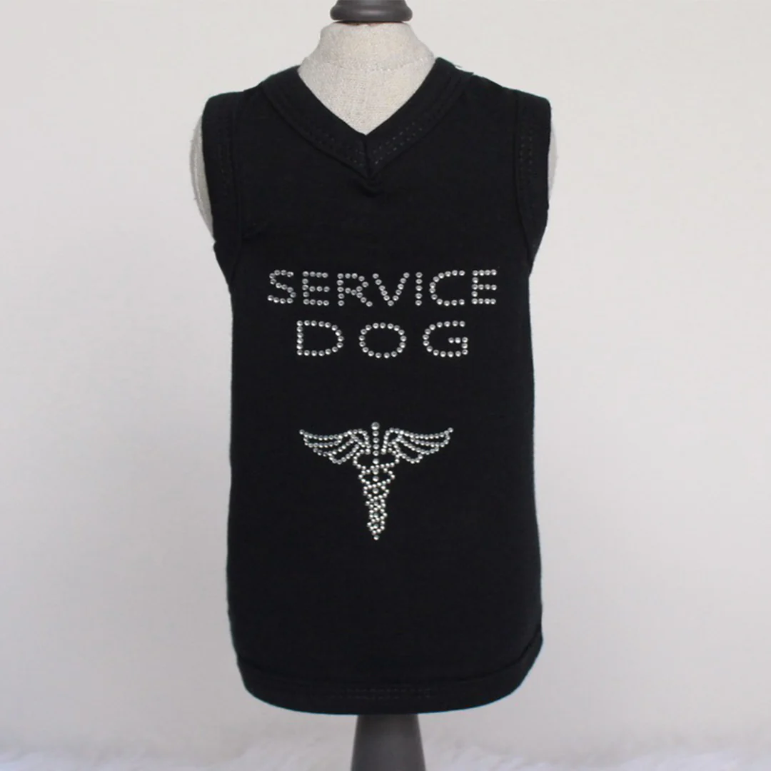 Service dogs deserve to express their style too! Let everyone know that your dog is a service dog with a trendy Service Dog Dress by Hello Doggie, featuring a dazzling crystal rhinestones "Service Dog" applique. Wash on gentle cycle in cold water, no bleach or softner and air dry or tumble on low.